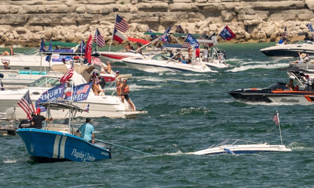 Rough waters on Lake Travis as hundreds of boats in Trump boat parade. Several swamped. #Statesman @bobphoto pic.twitter.com/DPpKKhgljF — bobphoto (@bobphoto) September 5, 2020
