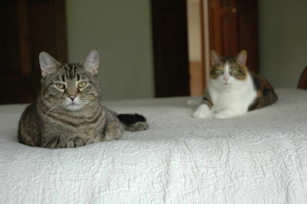 I love the express on that gray tabby’s face, and the caption is perfect.