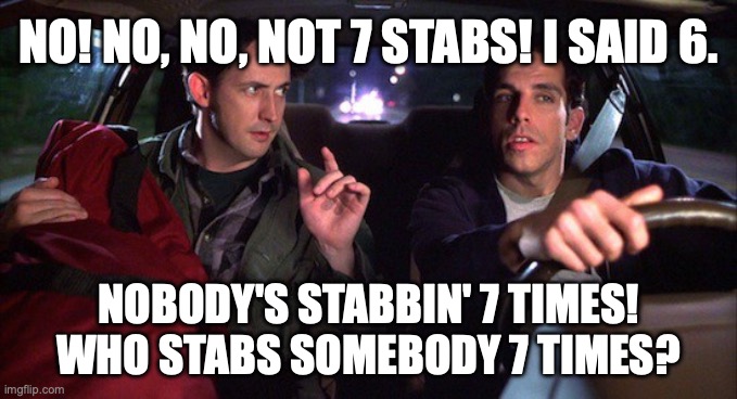 That 6 stabs limit is like the $950 “petty theft” threshold in CA and other places with value limits on stolen property before the law specifies an arrest is even called for.