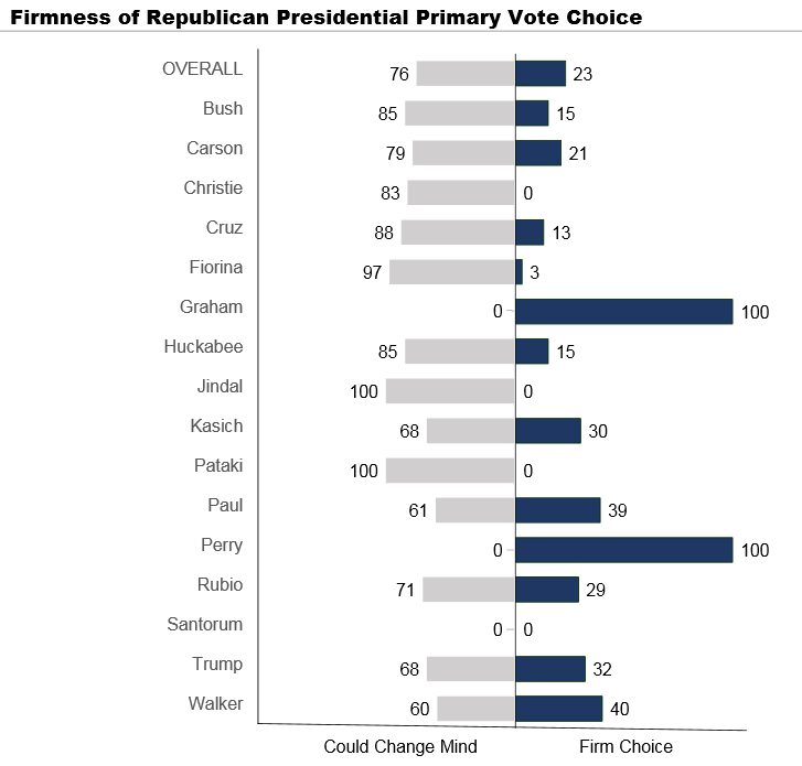 Obviously Graham and Perry are outliers as they don't have much support to begin with and neither will likely be able to last until NH anyway.  The lesson though is that switching is highly likely between now and the NH primary so take all these numbers with a grain of salt.  Carly Fiorina looks like she should be especially focused on cementing her support following her little boomlet.  Honestly, if I was asked the same question I would also answer that I could change my mind.  It's still very early in the process and I think it is important for conservatives to back one candidate at some point so our vote doesn't get split and we don't end up with someone we just can't stomach at all.
