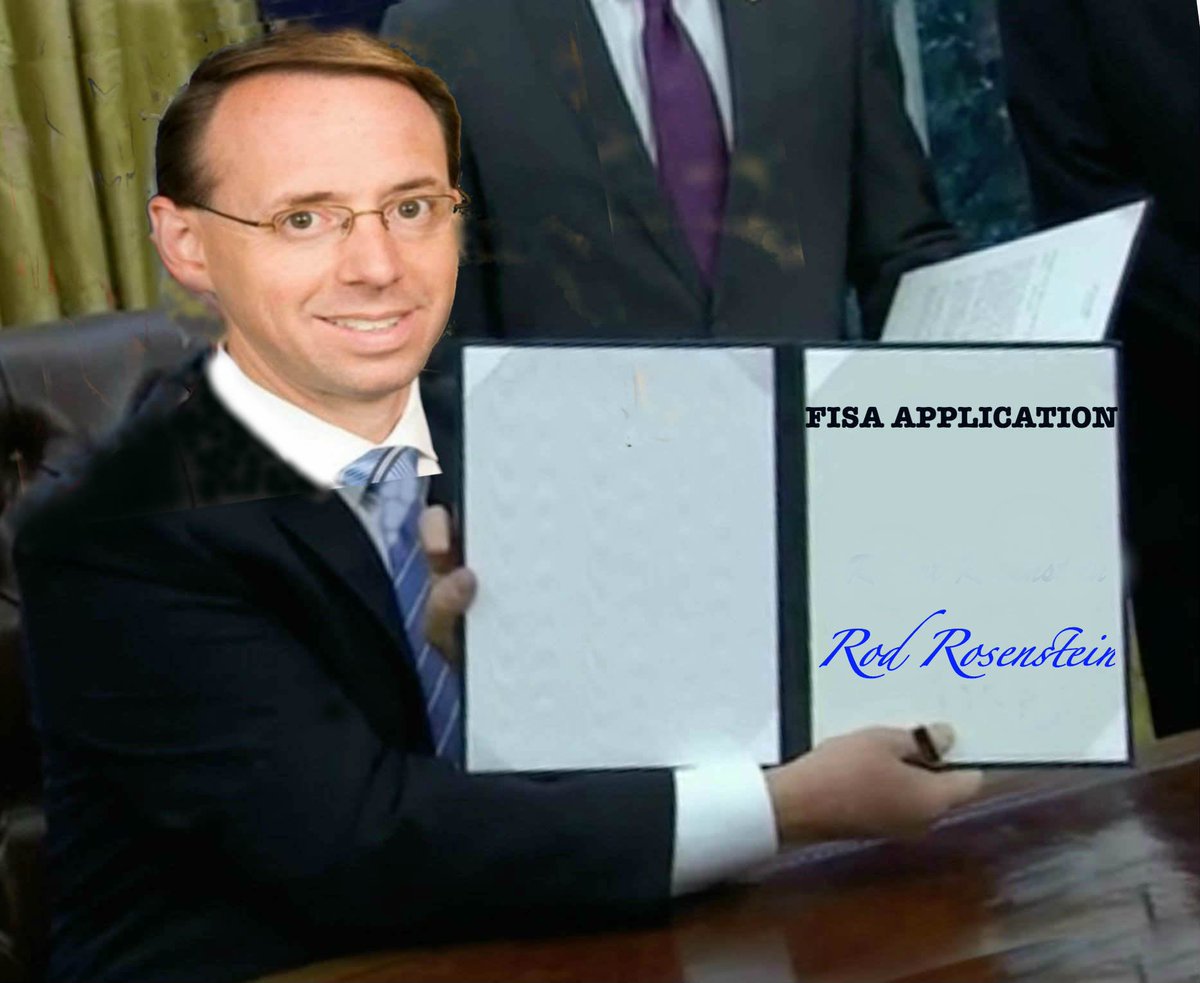 I get the connection between Rod Rosenstein and the FISA application, but I’m not sure what message you are trying to convey. Just a pic of Rosenstein with a document in his hand is not whacky enough to be noticed.