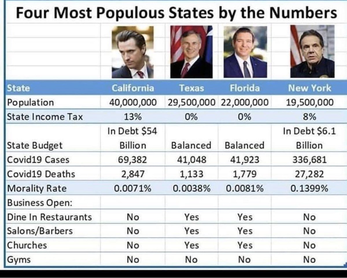 Population density and big cities instead of suburban and rural populations for a greater % of the population is one big factor in the different Wuhan Virus experience between the two states.
