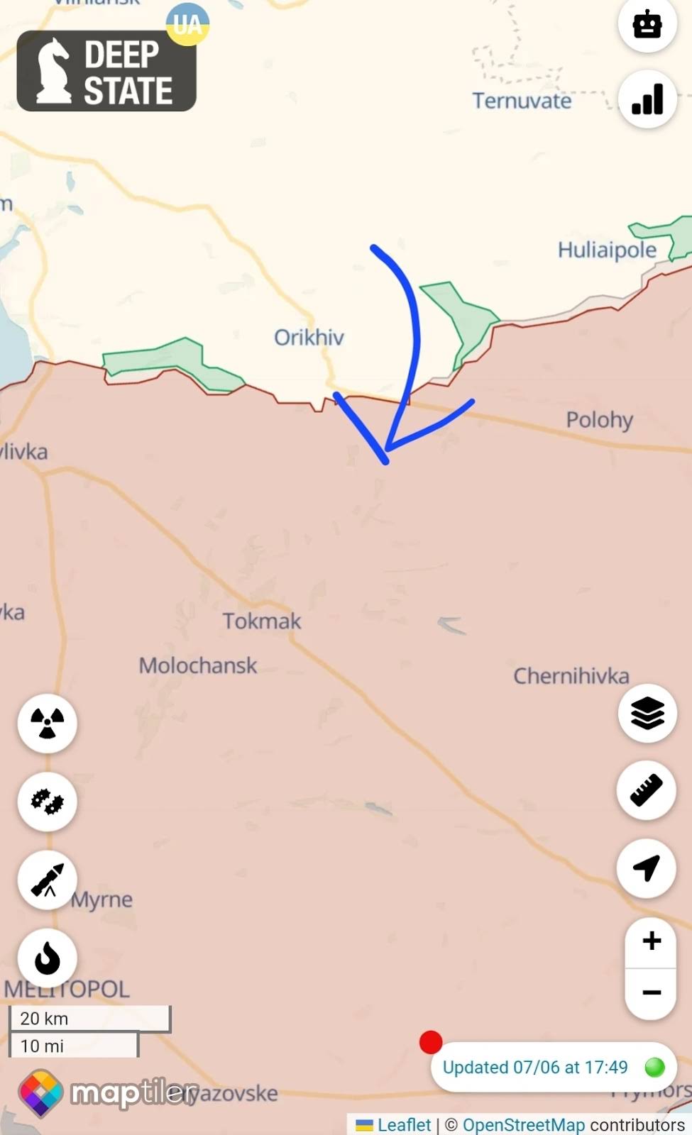 "Ru sources claim a massive tank led assault is underway in the Orikhiv area towards Tokmak.My speculation:
