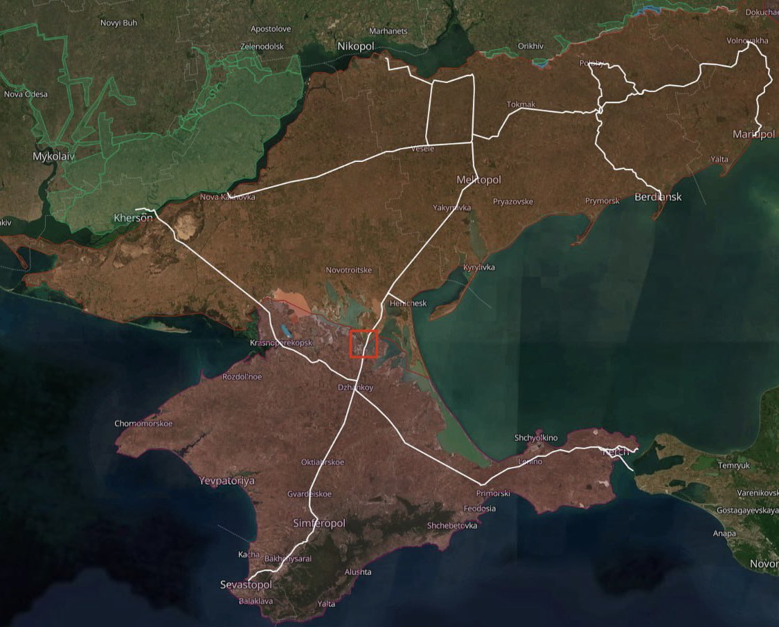 The railroads that Russians can use to supply the entire southern front are a connection from Armiansk towards Kherson and from Dzhankoi towards Melitopil. There are no other working railways (the railway connection from the direction of Donetsk to Volnovakha does not function).
