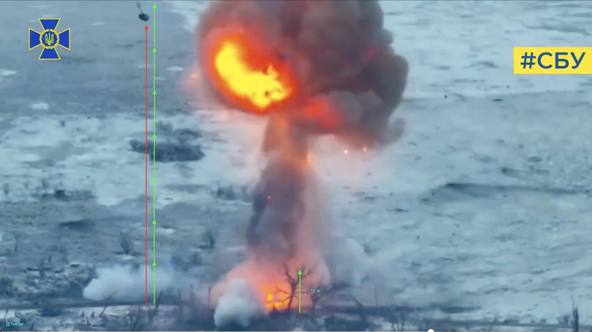 I tried to estimate the altitude and when we assume that the tree is 15m tall and the fact that the turret even left the frame then we easily exceed 100m.