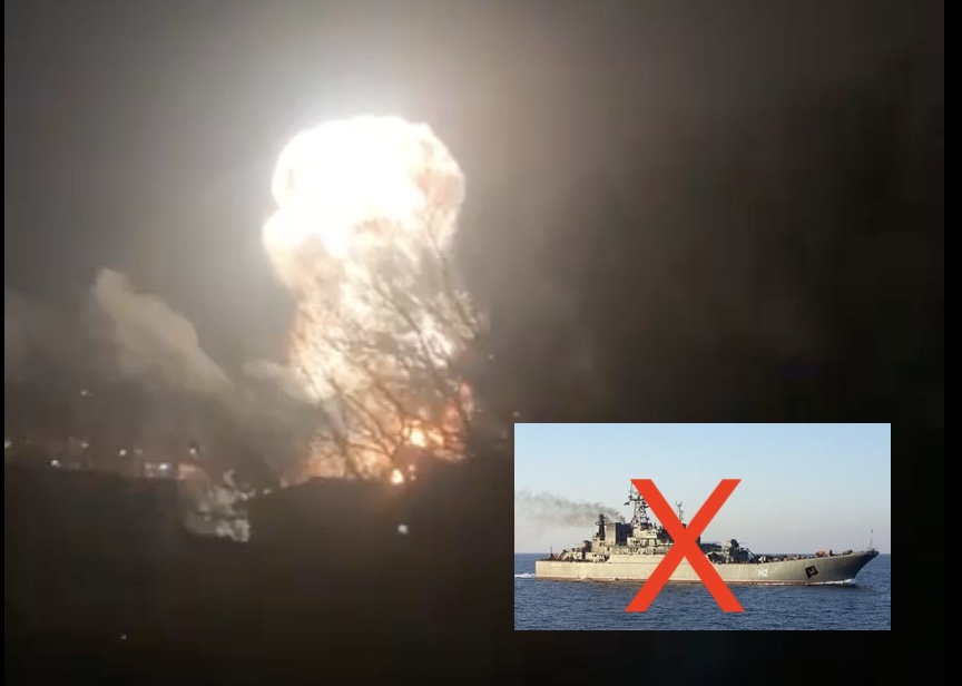 This is the clearest video so far of the Ukrainian missile strike against the Russian Ropucha-class landing ship in Crimea.