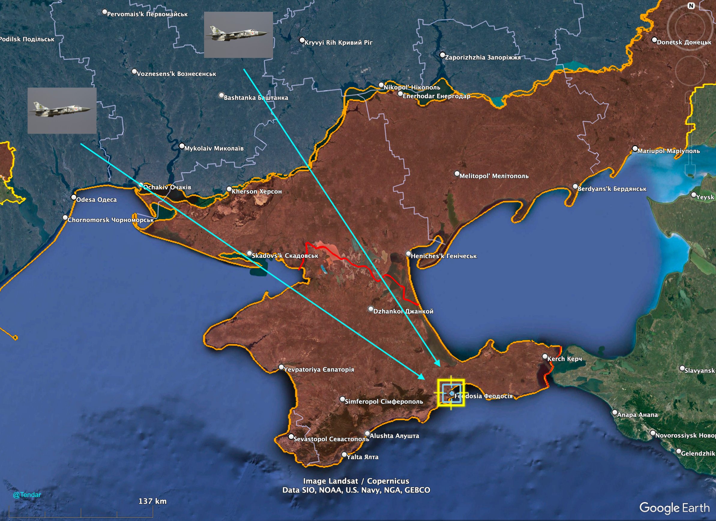 According to our information, at least 3 Su-24 fighters were involved in the attack. Moreover, one of them distracted the air defense while approaching Crimea from Odessa through the Black Sea.