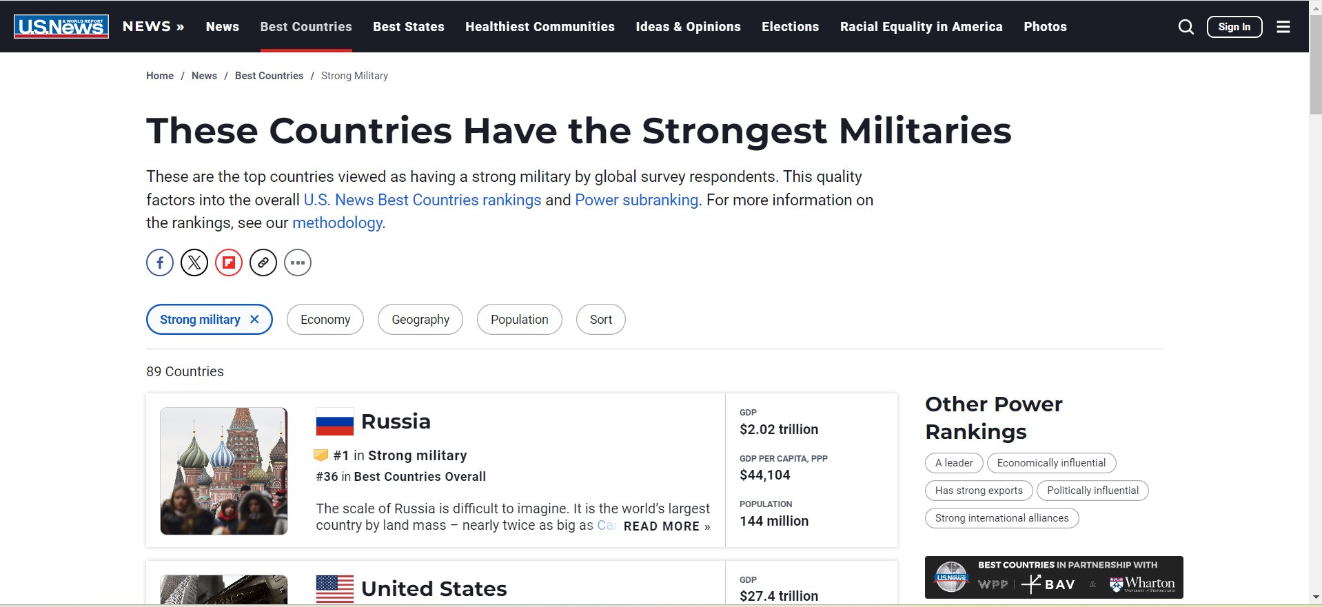 🚨RUSSIA LEADS AS WORLD'S STRONGEST MILITARY, U.S. FOLLOWS IN SECOND