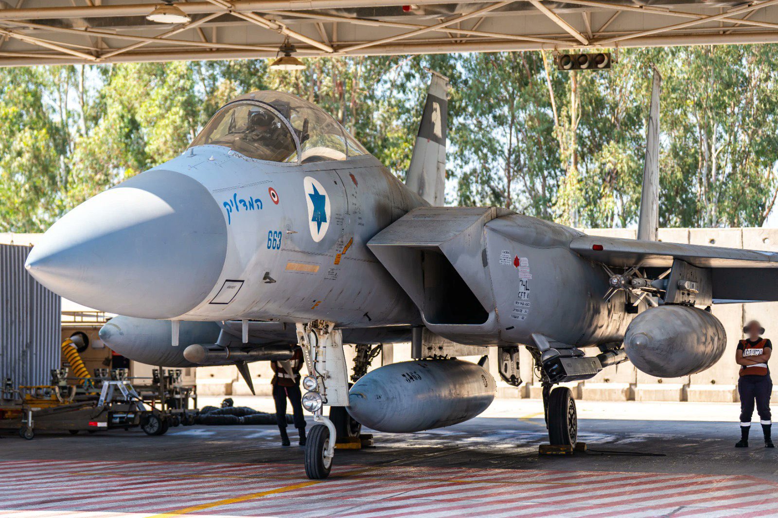 Israeli Air Force F-15 Eagles heading out to escort a strike package into Iranian airspace.
