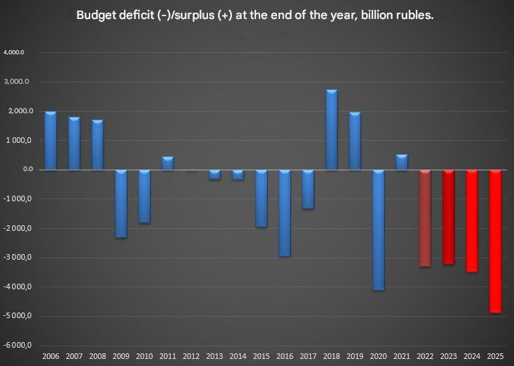 ‼️🇷🇺💵 The deficit of the Russian federal budget, according to data from the first 7 months of 2025, has increased to nearly 120 billion dollars.