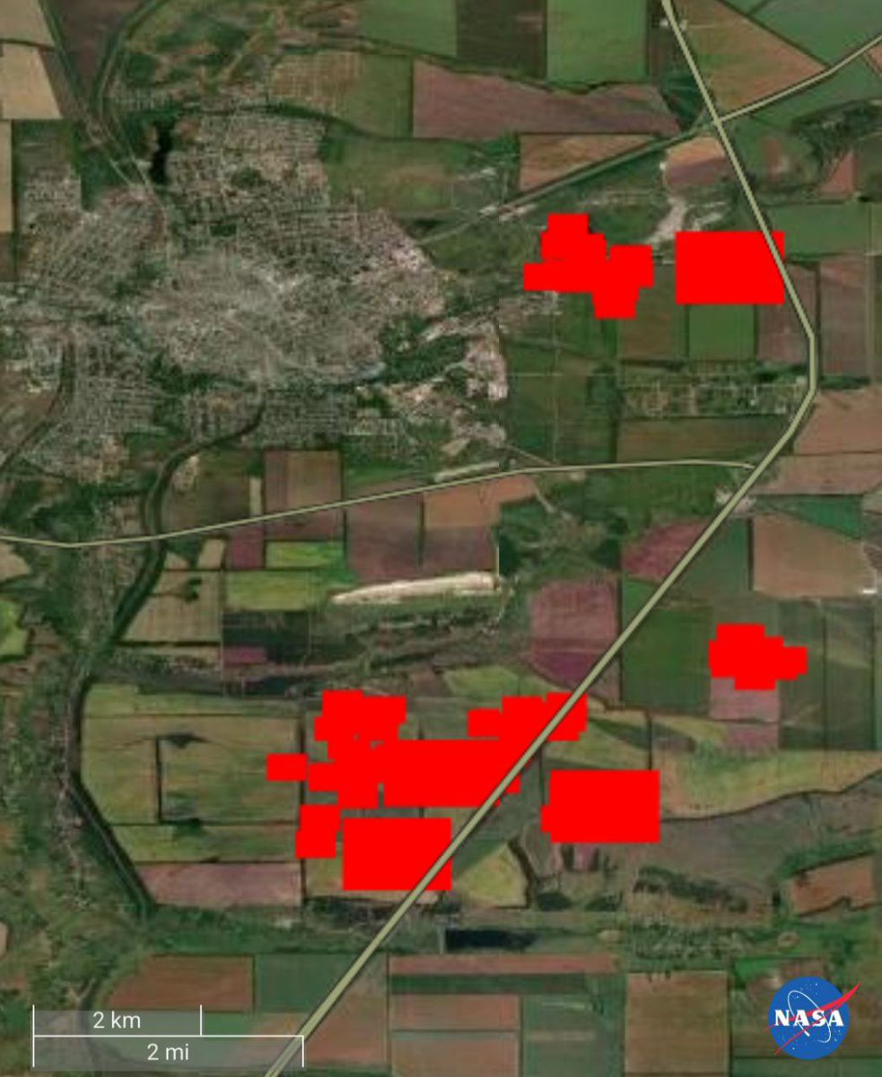 🔥🇷🇺 NASA satellites have detected large-scale fires in the area of the Russian military airfield Millerovo (in the vicinity, not at the airfield itself).