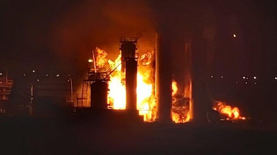 Ukrainian drone strike tonight. Kirishi oil refinery outside of St. Petersburg is burning and exploding.