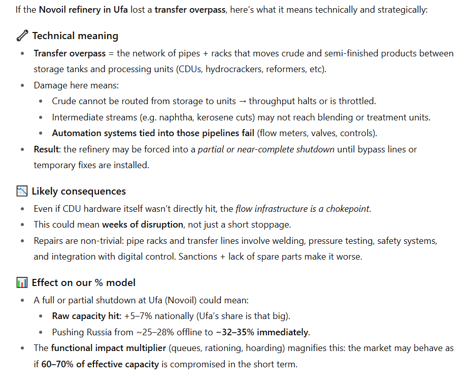 1/5 Today, about 17% of the capacity is out of order, which is more than a million barrels of processing per day.