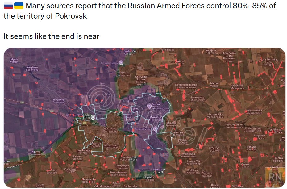 Russian forces continue to intensify offensive operations in and around Pokrovsk to seize the town and collapse the Ukrainian pocket. Both Ukrainian and Russian forces recently made tactical advances in the Pokrovsk area. Geolocated footage published on November 1 indicates that Russian forces recently advanced in southeastern Pokrovsk.[1] Additional geolocated footage published on November 2 shows Ukrainian forces striking two Russian soldiers in northern Pokrovsk conducting what ISW assesses was an infiltration mission that did not change the control of terrain or the forward edge of the battle area (FEBA).[2] Ukrainian military sources and Russian milbloggers recently stated that Russian forces are infiltrating into northern Pokrovsk.[3] Russian milbloggers claimed that Russian forces advanced in northeastern, central, and southern Pokrovsk; in northern and southeastern Myrnohrad; and south of Hnativka and Rih (all east of Pokrovsk).[4] A Russian milblogger reported that Ukrainian forces recaptured territory north of Zatyshok (northeast of Pokrovsk).[5] The Ukrainian General Staff reported on November 2 that Ukrainian forces recaptured 400 square meters in an unspecified area of the Pokrovsk direction, likely referring to recent tactical counterattacks north and northwest of Pokrovsk.[6]