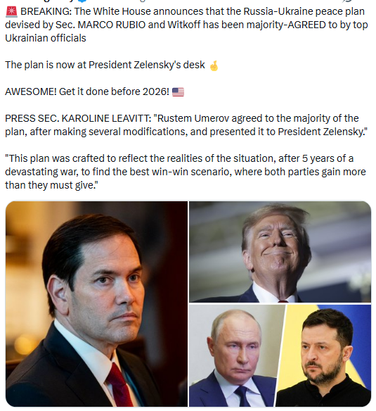 “Zelenskiy Says He Agreed to Work on US Draft Plan to End War”
