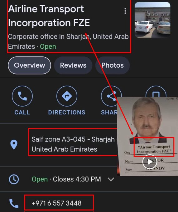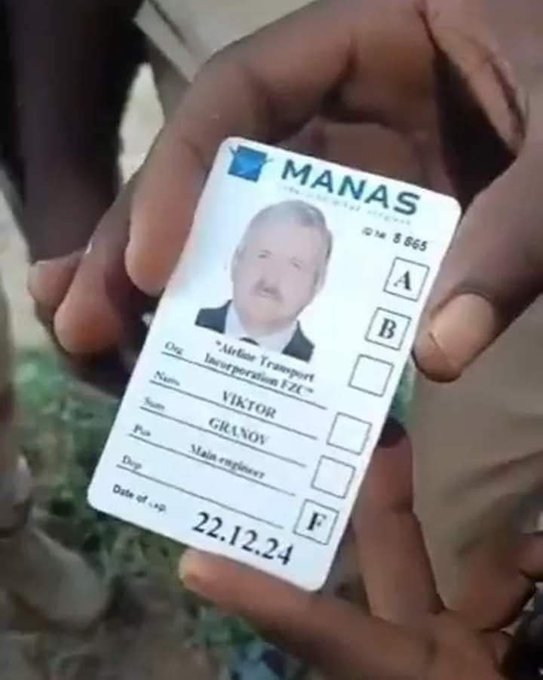 In fact, the wreckage is that of an Ilyushin-76, and one of the crew members was carrying a crew badge (in the video below) identifying him as the main engineer for “Airline Transport Incorporation FZC,” a company based in the United Arab Emirates, with has ties to Kyrgyzstan. The crewman’s badge said “Manas International Airport,” which is the main international airport of Kyrgyzstan.