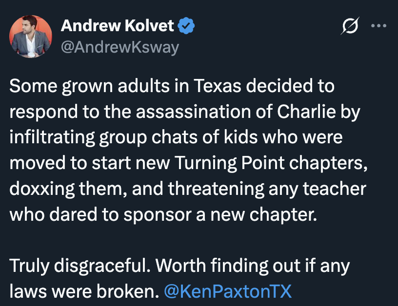 https://x.com/M4LHarris/status/1968756309609570494?ref_src=twsrc%5Etfw%7Ctwcamp%5Etweetembed%7Ctwterm%5E1968756309609570494%7Ctwgr%5E0a7fa75bf619ab6bee9ae31b8cc4ad343b452139%7Ctwcon%5Es1_&ref_url=https%3A%2F%2Fnotthebee.com%2Farticle%2Ftexas-ag-to-investigate-facebook-group-that-doxxed-kids-who-want-to-start-tpusa-chapter-at-their-school