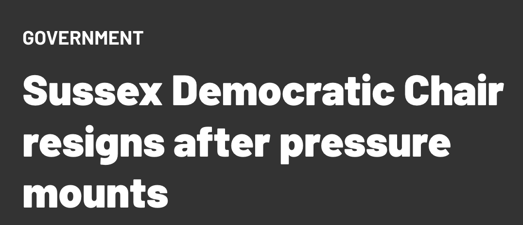 You'd think they would include that in the headline. Here's Spotlight Delaware on the Democratic Party Chair in Sussex County, who balked (ironically, as you'll see in a moment) at the initial calls for him to resign.
