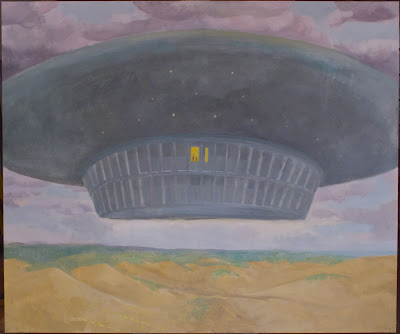 Looking at the paintings I was struck by the fact that apart from being artistically pleasant, the UFO and even the aliens pictured closely match descriptions I have collected regarding events tied to this region to a rather remarkable extent. The aliens do appear very much, if not identical, to the Axthadan race of Andromedan aliens I have written about before. This UFO reporter is fairly sure this event occurred. Robert Llimos was only carrying a notebook and pencil at the time.