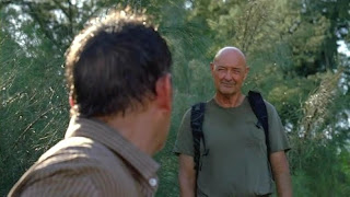 He really had no choice but to continue on with the group, though, and back at the beach camp he made a halfhearted attempt to discredit Miles, but Ilana was having none of it. Good ol' Lapidus was still willing to make small talk with Ben, however, and I really dug their conversation about how the Island "still got Lapidus in the end." I think it's fair to say that in the original timeline, if the Island wants you, it's gonna get you... and -- as we saw later with the Jack/Richard scene -- it's not going to let you go until its business with you is finished. However, in the split-off timeline, characters are making different decisions when the power of the Island (and Jacob... and the Man in Black) isn't there to nudge them one way or the other. Interesting.
