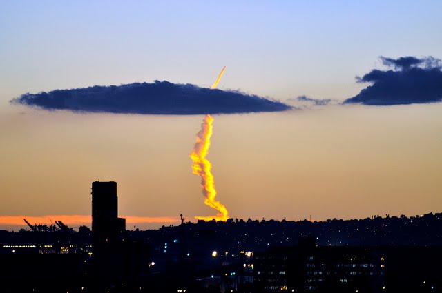 The video of what looks for all the world like the contrail of a missile was shot Monday evening by KCBS cameraman Gil Leyvas from a news helicopter over Los Angeles.