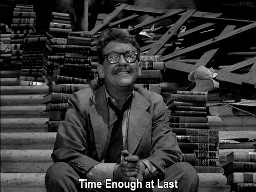 I like the one where the guy is in the library and doesn’t know the world has ended. He comes out to the ruins and breaks his glasses.
