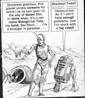For an example of how times have changed, see this panel from a Mad Magazine "Star Wars" parody in 1977. This joke would never be made today.
