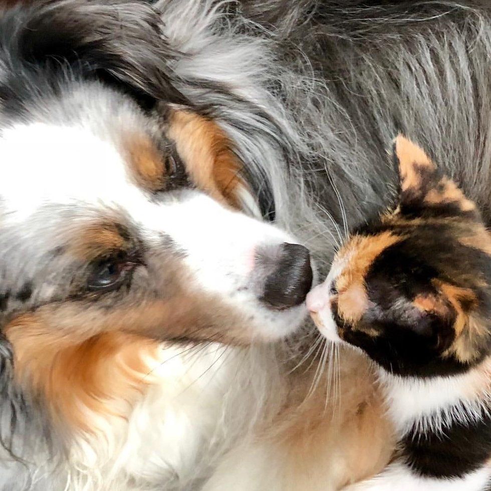 Good morning Meg! I have a postcard I bought in Germany 10 years ago that is similar to that- a puppy and kitten- and it says in german that for two to be friends they must be kindred in their hearts, everything else doesnt matter, like looks (cat vs. dog).