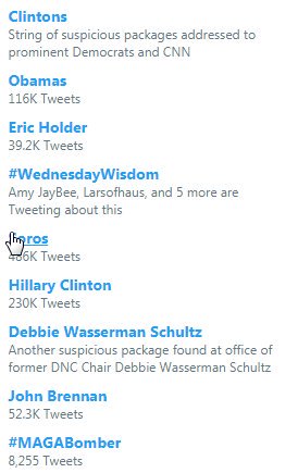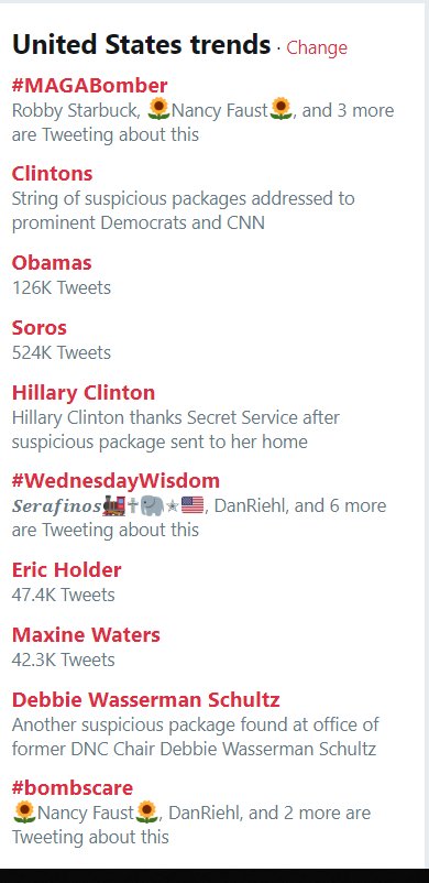 9) and #MAGAbomber is now the top US Twitter trend. pic.twitter.com/3wNvBEVYYG— STEALTH JEFF (@drawandstrike) October 24, 2018