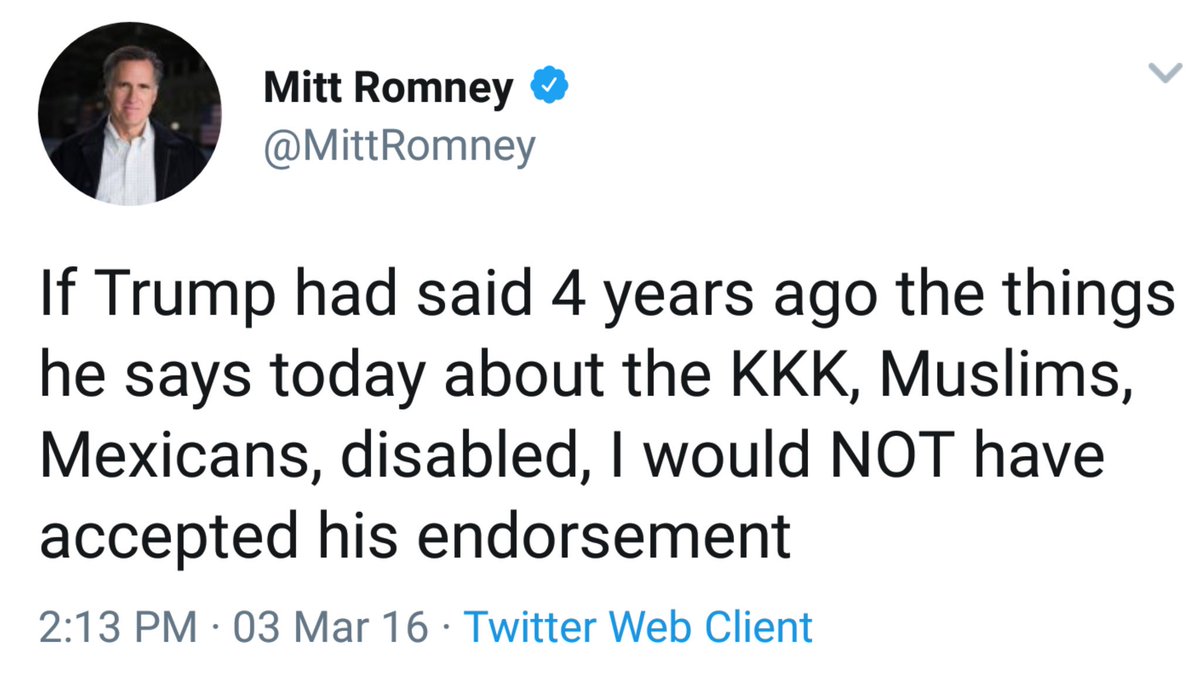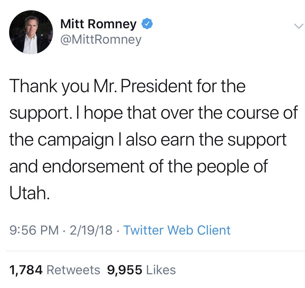I get that @MittRomney doesn't like @realDonaldTrump But since the elegant new senator from #Utah accepted the president's endorsement & earlier even petitioned @POTUS for a Cabinet-level position, Mr. Romney's op-ed seems rude & has the trappings of political showboating.