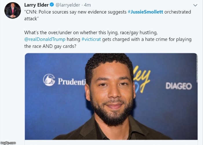 "Yeah but I think there will be enough outrage with this that he will be charged..he not only accused two white Trump supporters of committing a hate crime against him, but he went on TV and DOUBLED DOWN on those accusations knowing he had made the entire thing up..what he wanted was a race war..and I want to know if Don Lemon was involved in this as well, apparently those two are good buddies"