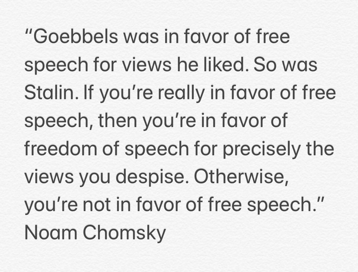 As Americas greatest linguist Noam Chomsky says,Free Speech is ALL SPEECH. Youre either for ALL of it or NONE of it.(Emphisis 4 dummies)