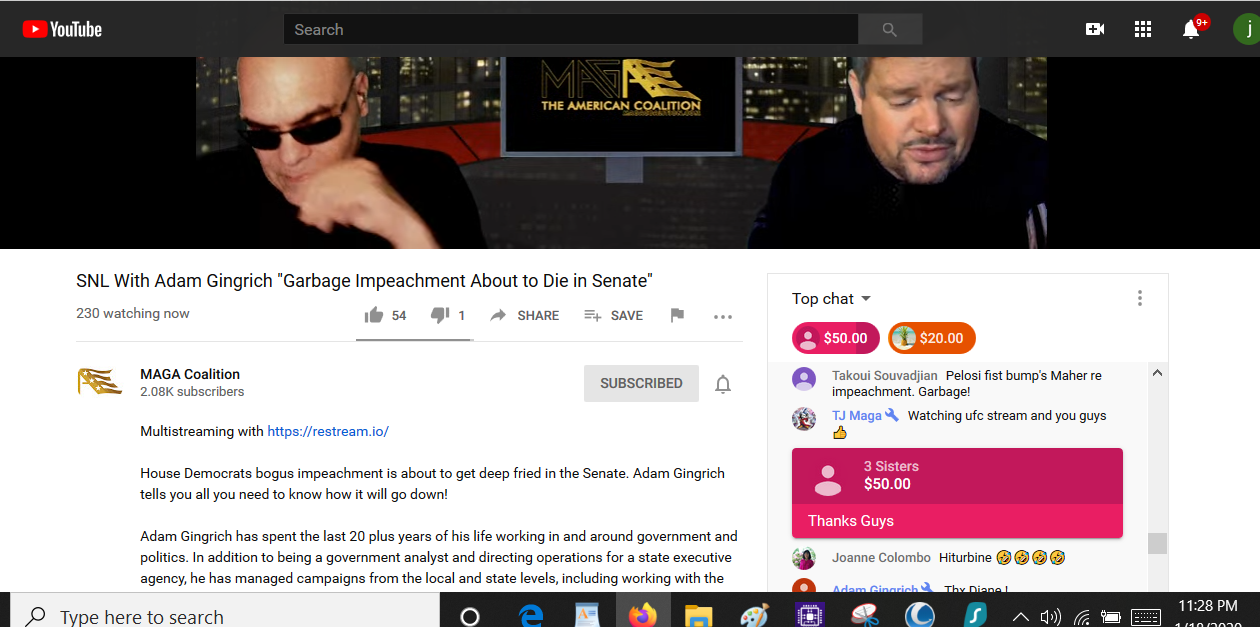 People can see their efforts there to re-elect President Trump for themselves. The YouTube discussions are maintained at YouTube.com.