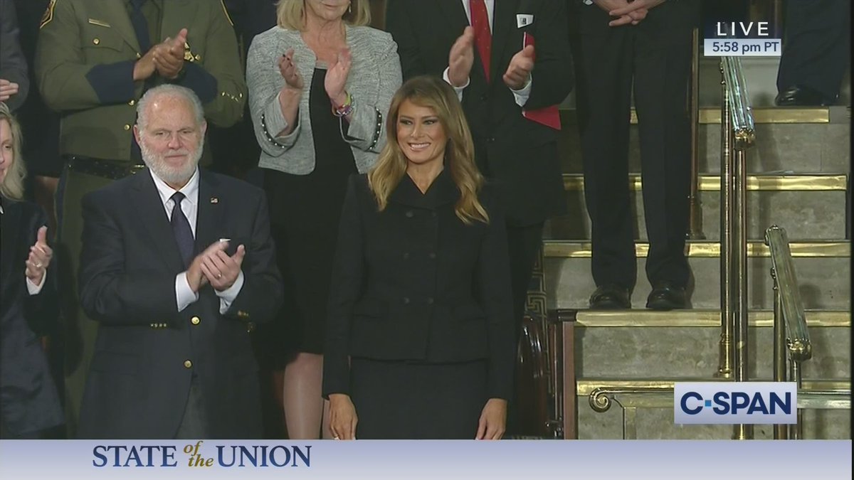 Melania arrives at the State of the Union. Seated next to her is Rush Limbaugh. pic.twitter.com/xaezbO8XLt— The Daily Wire (@realDailyWire) February 5, 2020