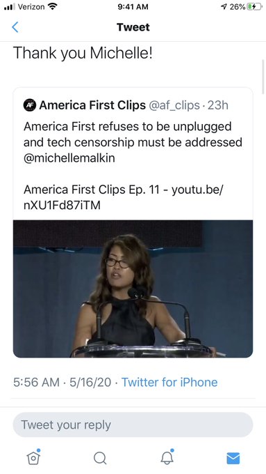 We see you playing games, @twitter - And screw you, @jaredholt and #coninc gatekeepers - #americafirst cant be contained. pic.twitter.com/gQ6pj0sKG2— Michelle Malkin (@michellemalkin) May 16, 2020