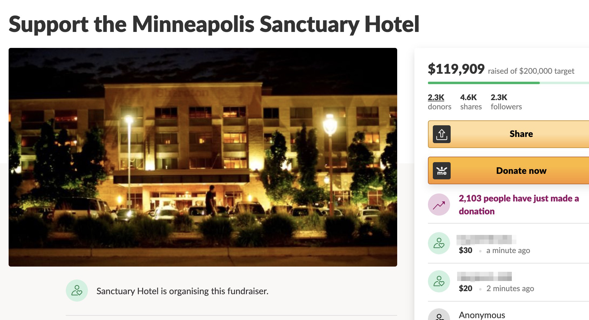 .@gofundme has become the site of choice for crowdfunding by far-left extremists whether it comes to bailing out rioters or now, supporting trespass. A Minneapolis @sheratonhotels taken over by extremists has been converted into their operations base. They want $200k in donations pic.twitter.com/wz2jN9cw5Y— Andy Ngô (@MrAndyNgo) June 9, 2020