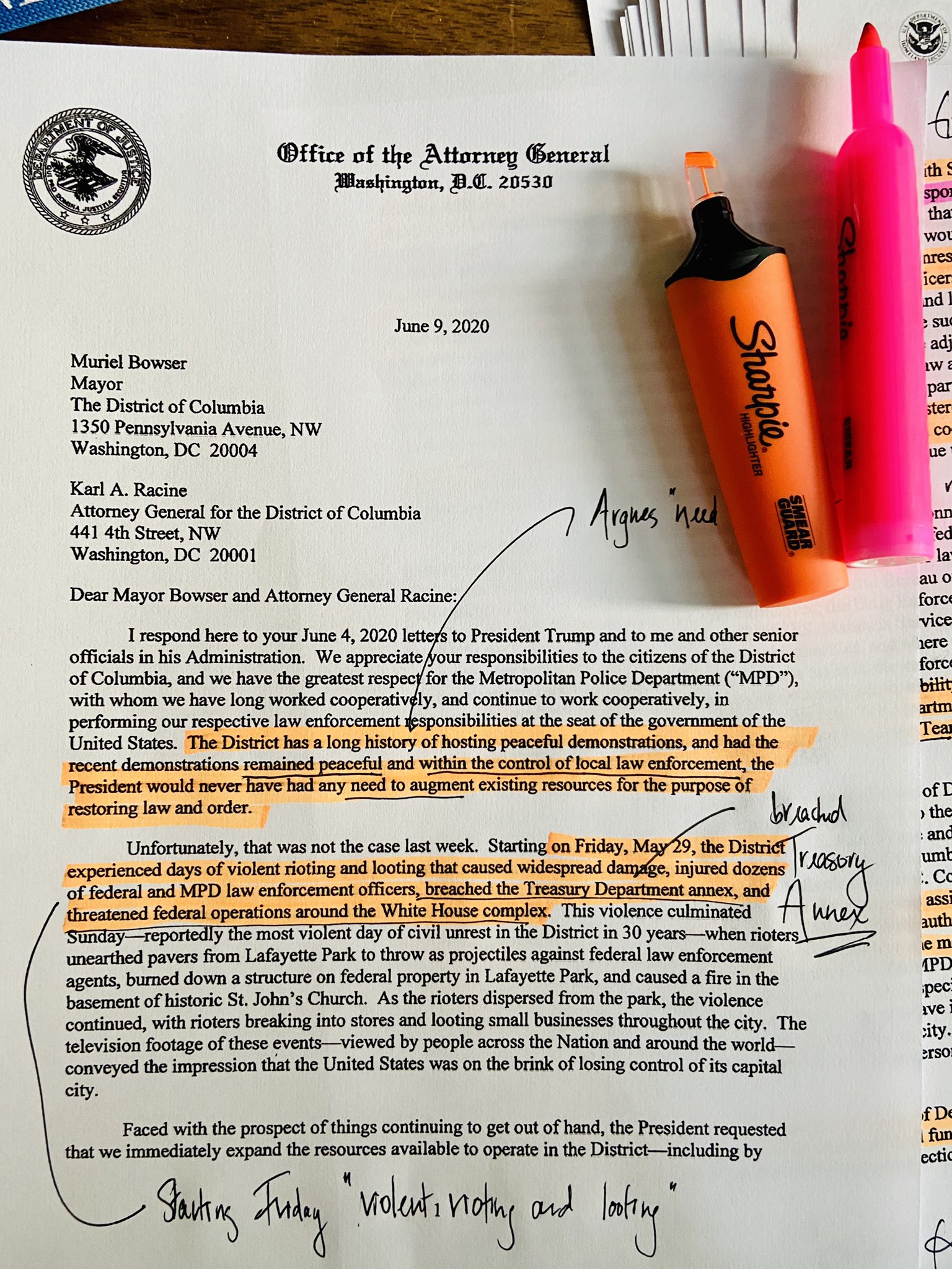~~~~~~~~~~~~~~~~~~~~~~~~~~~~~~~~~~~~~~~~~~~~~~~~~~~~~~~~~~~~~~~~~~~~NEW: AG Barr letter to @MayorBowser lays out detailed assessment demonstrations beginning 5/29. Writes if protests had remained peaceful and within the control of local law enforcement, the President would never have had any need to augment existing resources for the purpose...— Catherine Herridge (@CBS_Herridge) June 9, 2020
