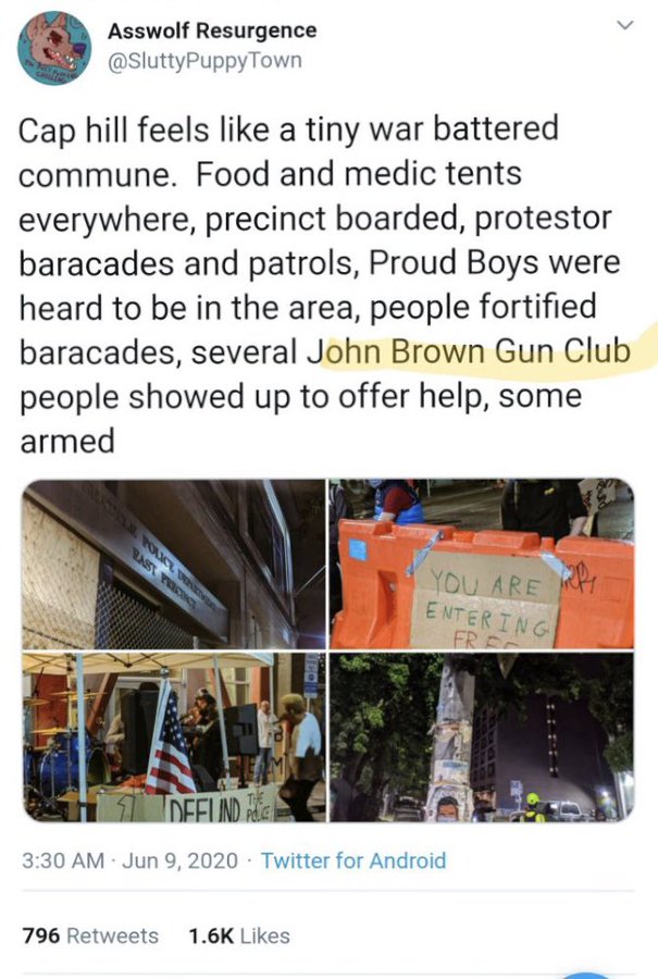 ~~~~~~~~~~~~~~~~~~~~~~~~~~~~~~~~~~~~~~~~~~~~~~~~~~~~~~~~~~~~~~~~~~~~~~~~Seattle #antifa extremists have occupied the Capitol Hill area in Seattle & turned it into a no-go zone. They have their people patrolling the barriers they set up. Local news crew was chased out. They had to seek refuge in fire station. pic.twitter.com/CLM08tJFFj— Andy Ngô (@MrAndyNgo) June 9, 2020