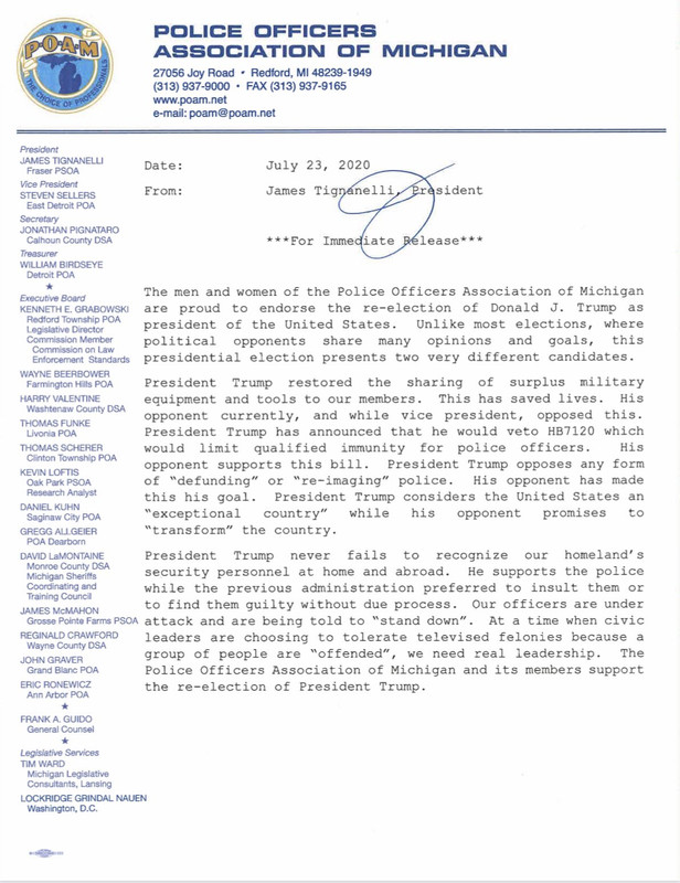 Officially and unofficially this is happening across the nation. The law enforcement, their family and friends will stand with POTUS No ads or talking heads are needed to get their votes. His actions have secured them.