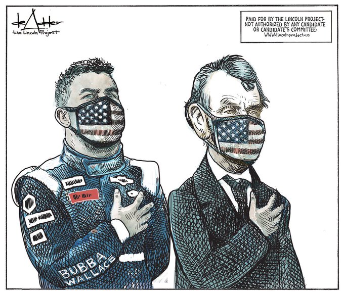 Q And just to follow up on the NASCAR thing: You were saying that we’re taking the tweet out of context, but this is what he tweeted. He says, “Has @BubbaWallace apologized to all of those great NASCAR drivers & officials who came to his aid, stood by his side, & were willing to sacrifice everything for him, only to find out that the whole thing was just another HOAX? That & Flag decision has caused lowest ratings EVER!”