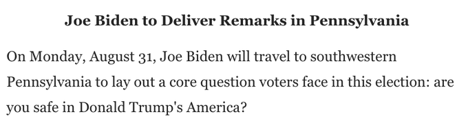 Biden to deliver a speech in western PA tomorrow, where I assume he will announce his new role as secretary-treasurer of Antifa. pic.twitter.com/cN7qEGrsX1— Dave Weigel (@daveweigel) August 30, 2020