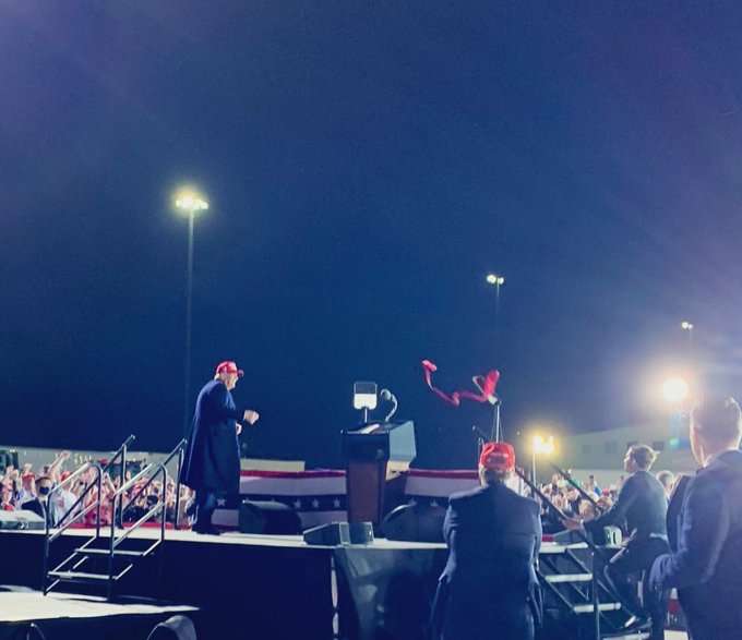 And he put on his MAGA hat!