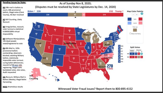 All disputes must be resolved by these State Legislatures by December 14th regardless of audits, recounts, lawsuits. 6 of those legislatures are majority Rs.