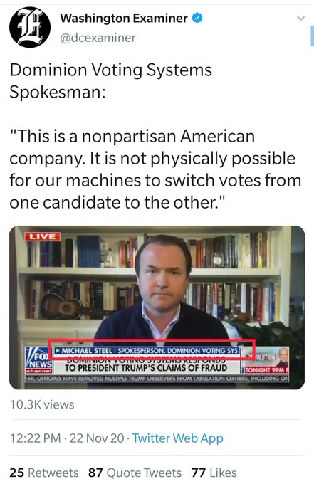 BREAKING: Michael Steel former assistant with Mitt Romney campaign is the spokesperson for DOMINION.