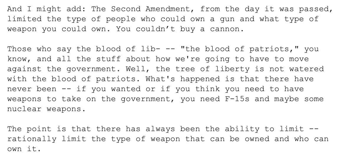 The president on the Second Amendment, guns, and the blood of patriots: pic.twitter.com/dblC3ouJNF— Byron York (@ByronYork) June 24, 2021