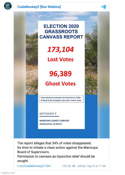 BREAKING NEWS: Maricopa County turns in a Ghost Town! There’s were over 96,000 votes registered by ghosts! For those believing in supernatural events you should go visit Maricopa County. But be careful, you could end up missing—just like the 173,000 missing votes.