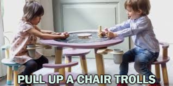 Trolls eat at the kiddy table.