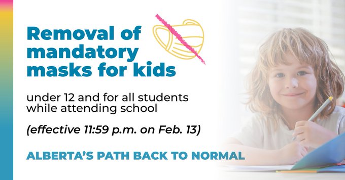 Starting tomorrow, masks will not be mandatory for Alberta students while attending school.
