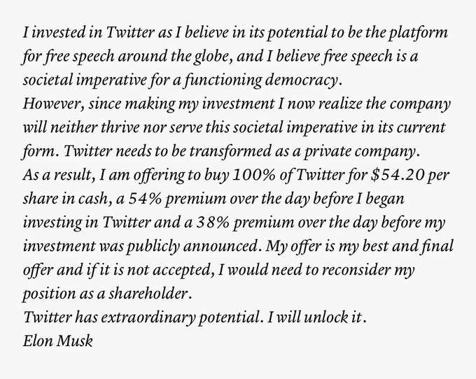 So, do you know what happens now? I don’t know how a takeover, hostile or otherwise, works. Is it just up to individual shareholders to sell their stock to Musk?