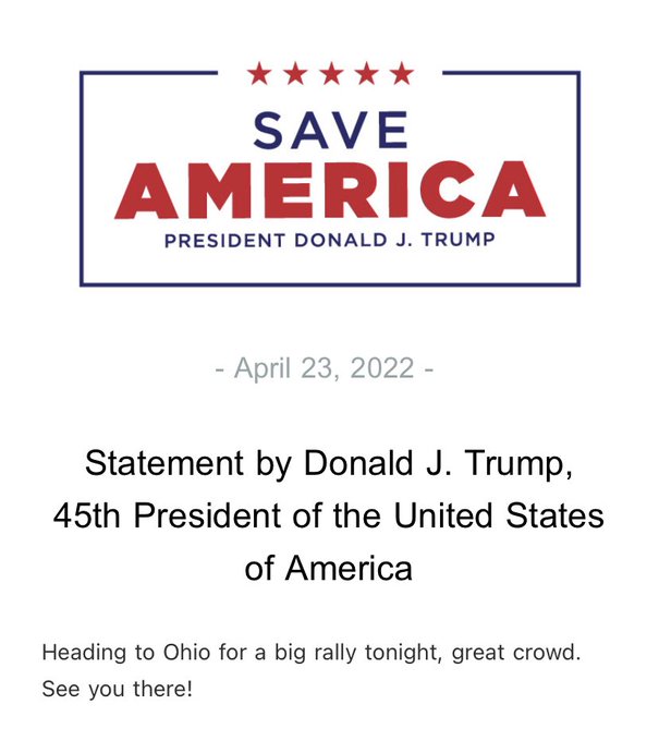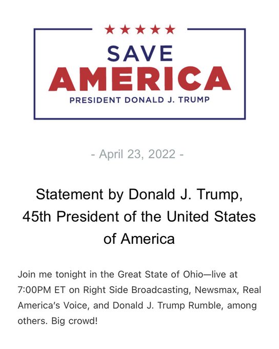 Crowd chants "JD, JD!" at Trump rally in Ohio @JDVance1 pic.twitter.com/LNjvSSZXjc— RSBN 🇺🇸 (@RSBNetwork) April 23, 2022